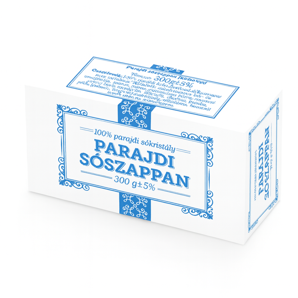 A sószappan egy, a parajdi sóbányából származó, természetes, szappan formájúra vágott, hozzáadott kémiai anyagoktól mentes termék. Tartalma 100% kristálysó, ami több mint 84 féle ásványi anyagot tartalmaz, ezzel a világ egyik legjobb minőségű és legértékesebb sói közé tartozik. Természetes őstengeri iszaptartalmának köszönhetően, hatékonysága sokkal rövidebb idő alatt és látványosabban érzékelhető, mint a piacon kapható más szappanoknak.